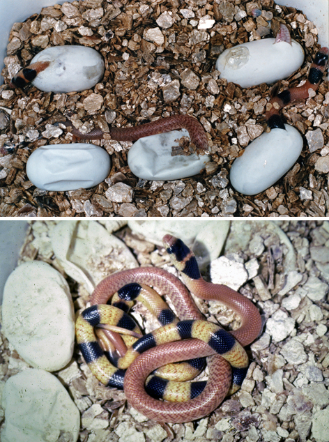 Hatching showing polymorphism - Ref: 1989 Polymorphism in captive bred siblings of the snake, Pseudonaja nuchalis. Herpetofauna 19 (20): 28.