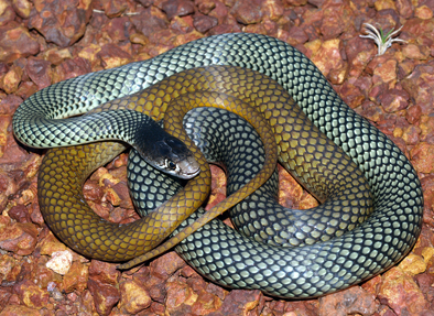 Black-necked Whip Snake (Demansia calodera) is restricted to the central west coast. This individual is from Carnarvon, WA.